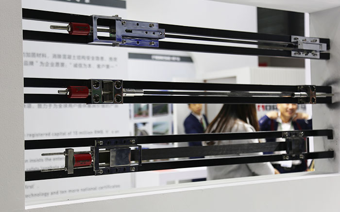 我们将平日里高高张拉在桥梁结构上的预应力碳板做成模型,镶嵌在展台结构上,不再高冷,更接地气,悍马预应力碳板加固系统在展会上大放异彩,获得了众多参展人士的青睐,他们对预应力碳板在结构上的应用产生了极大的兴趣,并纷纷走到展示区驻足参观。