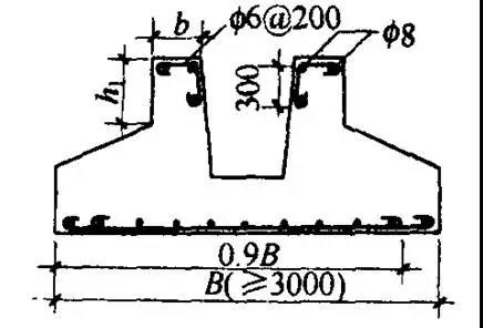 (3)预制柱下杯形基础,当b/h1<0.65时(b为杯口宽度,h1为杯口外壁高度),杯口需要配筋。