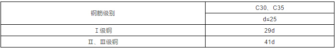 1、绑扎接头中钢筋横向净距大于或等于钢筋直径且不小于25mm,搭接长度见下表。