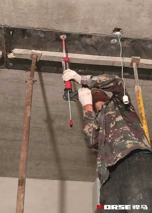 3.注胶量要掌握准确,不能过多也不能过少。过多,插入钢筋时会有胶体漏出,造成浪费或污染;少则胶体不够满,造成粘结强度不够。一般以注满孔深三分之二为宜。