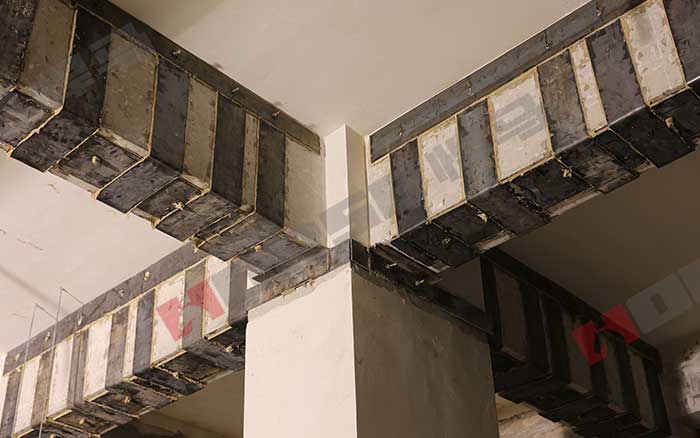 结构粘钢加固技术是采用优质环氧粘钢胶,将钢板与混凝土结构牢固地粘结,形成复合的整体结构,从而通过有效传递应力形成整体联合工作,恢复或提高结构的承载能力、强度及刚度。