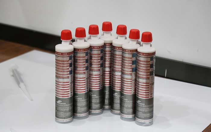 4.胶水的量要掌握准确,胶水过多植入钢筋或螺杆时会大量溢出,造成浪费和污染;胶水过少则粘接区填充不足,锚固可靠性降低,一般以注满孔深度三分之二为宜。