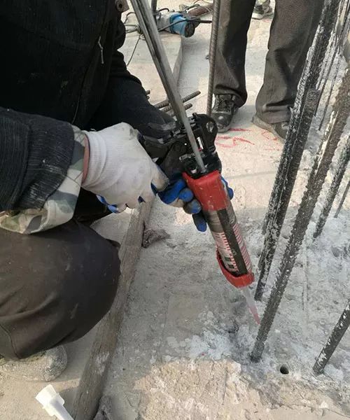 在此过程中,植筋胶的作用就是通过高强粘结力将钢筋与混凝土孔壁紧紧粘结在一起,形成非常牢固的粘结锚固力,这种锚固力可以有效抵抗钢筋承受的剪切力和外拔力,使新旧构件牢固的连接在一起,从而达到加固的目的。可见植筋胶的粘结强度对植筋的影响很大,因此,应按规范规定,选购高强粘结性能的植筋胶。