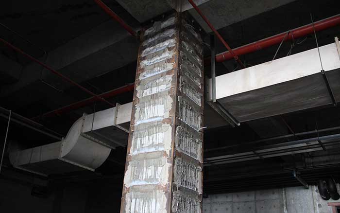 粘钢加固法是用改性环氧粘钢胶将钢板粘贴于构件表面,使之与原结构共同工作,从而提高构件性能的一种加固方法。可在基本不改变构件外形和不影响建筑物使用空间的条件下提高构件的承载力和使用性能。具有加固施工周期短,加固质量易于保证、造价低等优点。