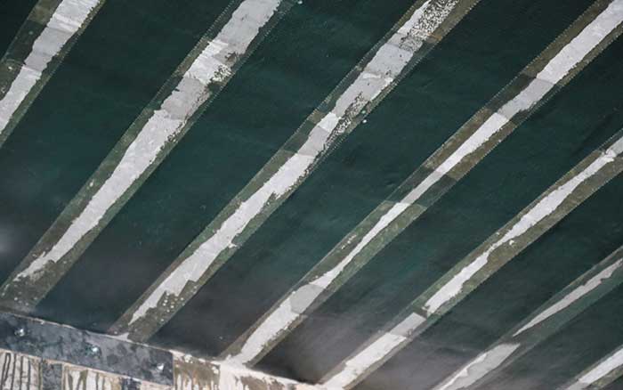 贵州遵义市国际商贸城由于混凝土强度不够,表面裂缝明显,现进行加固处理。