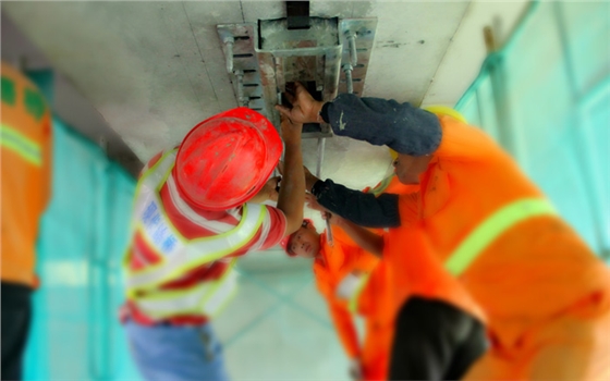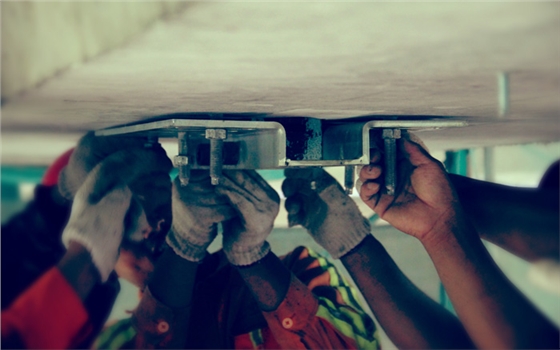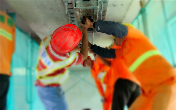为协助配合通济河大桥顺利加固施工,我司经理作为技术指导去到了施工现场。从定位、安装、到张拉,上海悍马预应力碳板经受住了重重考验,顺利张拉成功。
