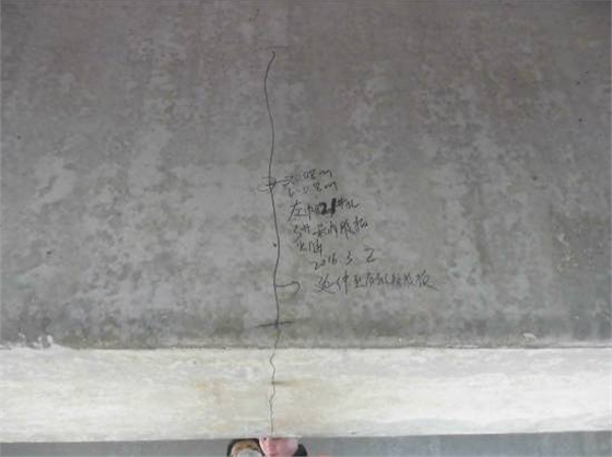 (图2)左幅21#孔3#梁内腹板竖向裂缝延伸至梁底