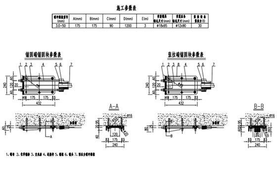 7.安装锚块。固定端锚块侧面螺栓强度建议用12.9级以上,锚块两端的楔形孔小孔均是朝内,高强螺杆,建议用10.9级以上。