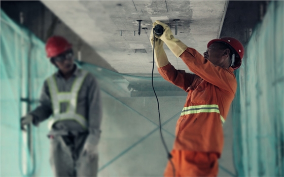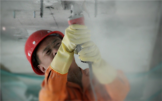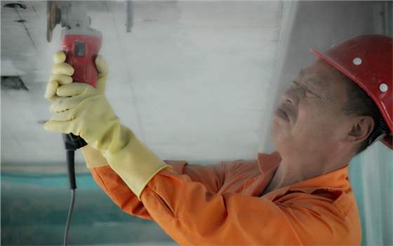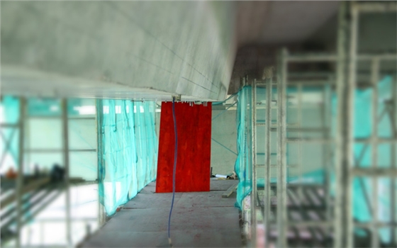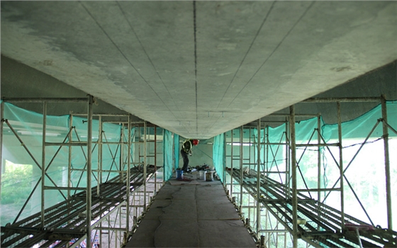 该项目隶属于大型桥梁养护国有企业-----江苏现代路桥有限责任公司。该公司主要经营路桥项目的工程养护,因为之前对预应力碳板的粘贴功效不甚了解,多方考察后决定选用我司预应力碳纤维板进行粘贴加固。现场施工图如下: