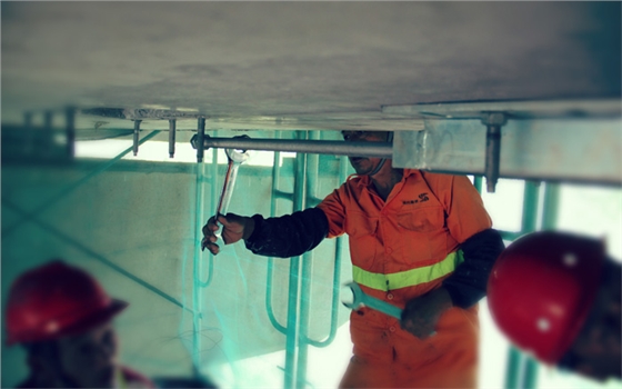 对于技术指导员施经理来说,上海悍马预应力碳板就像自己的孩子一样,能够亲眼看着它从“出生”到“成才”,这种感觉无以言表。预应力碳板粘贴成功后,他发文感慨:两天工地的生活,似曾回到了十多年前的搬砖生涯,与工人同吃喝,以及那个献给包工头的青春;记不清走过了多少工地,但记得每个工地都一样,它的脏,它的尘,它的简陋和它那没有隐私的宿舍,以为自己不会属于这里,才发现自己从来就没有不能适应它,更未离开这里;往事如烟,往事又并不如烟,但往事终究如烟!今天依然走在满是尘土的工地,满眼都是我们的材料,成堆的锚具,和那刚刚张拉好的预应力碳板,犹如,工地静待风吹雨,悍马材料入梦来,青春没有试加载,人生必须预应力。