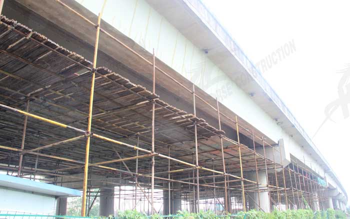 (5)预应力筋张拉前,应清理承压板面,并检查承压板后面的混凝土质量。如该处混凝土有空洞现象,应在张拉前用环氧砂浆修补;