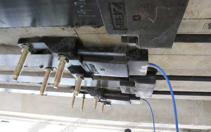 (6)锚具安装时,锚板应对正,夹片应打紧,且片位要均匀:但打紧夹片时不得过重敲打,以免把夹片敲坏;
