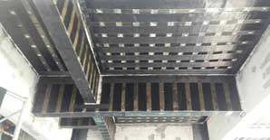 在建筑结构中,受弯构件主要是指各种类型的梁和板。采用碳纤维布对这类受损构件进行正截面加固时,通常是将碳纤维布粘贴在构件的受拉底面,如梁底和板底,然后在端部设置附加锚固措施,以此来达到增强构件的目的。锚固可采用碳纤维布制作的u形箍或预制钢u形箍。