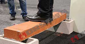 我们做了实验,在一排砖头下面粘贴碳纤维布,可以看到,碳纤维布固化后人站上去,结构是没有问题的。你肯定会惊讶:小小一块布就这么大能耐?
